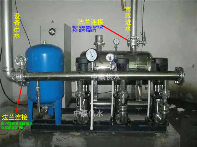 1、本設備進出水口都為法蘭,故市政進水管和小區地下室主管道也都應用法蘭,以方便法蘭對法蘭連接。