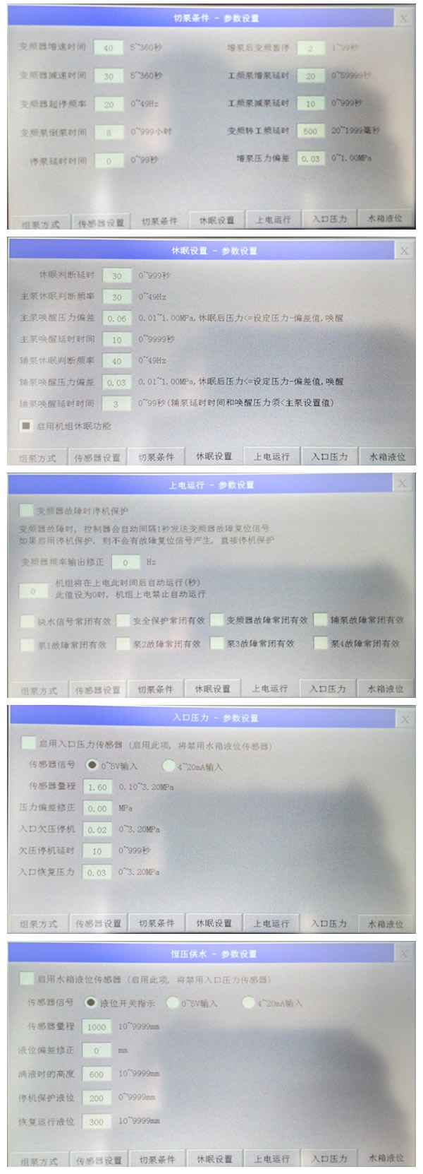 中贏恒壓變頻給水設(shè)備采用人性的視窗操作系統(tǒng),采用PLC可編程控制全自動運行,無需人員看守。是目前國內(nèi)最為先進的高層供水設(shè)備之一,它高度智能,自動化程度高,系統(tǒng)設(shè)計簡單明了,真正的滿足了任何客戶的要求,操作設(shè)備、調(diào)整參數(shù),像我們玩手機一樣簡單,讓不懂行的客戶也能成為用水專家。